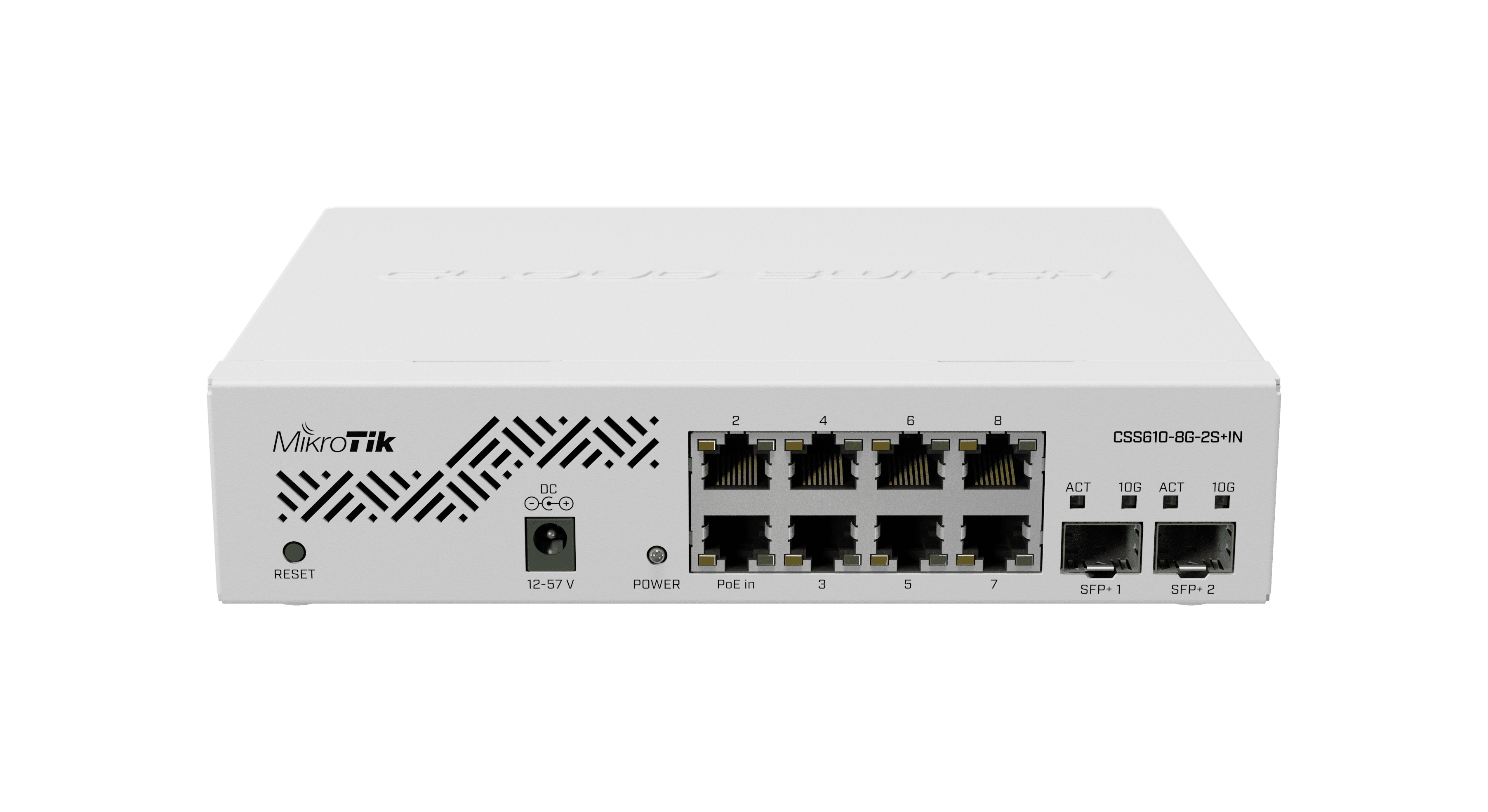 Cloud Smart Switch 610-8G-2S+IN with 8 x Gigabit ports, 2 x SFP+ cages, SwOS, desktop case, PSU